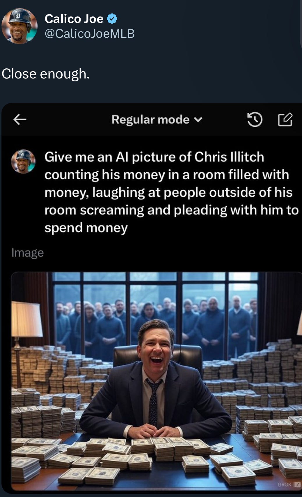 Of course the Petzold report was no surprise to Tigers fans. This Ilitch has been so penurious for so many years that many fans have largely lost hope he will ever make a significant investment in player talent. A popular Twitter baseball account run by a Tigers fan recently expressed this frustration in response to the team’s inactivity in the free agent market.